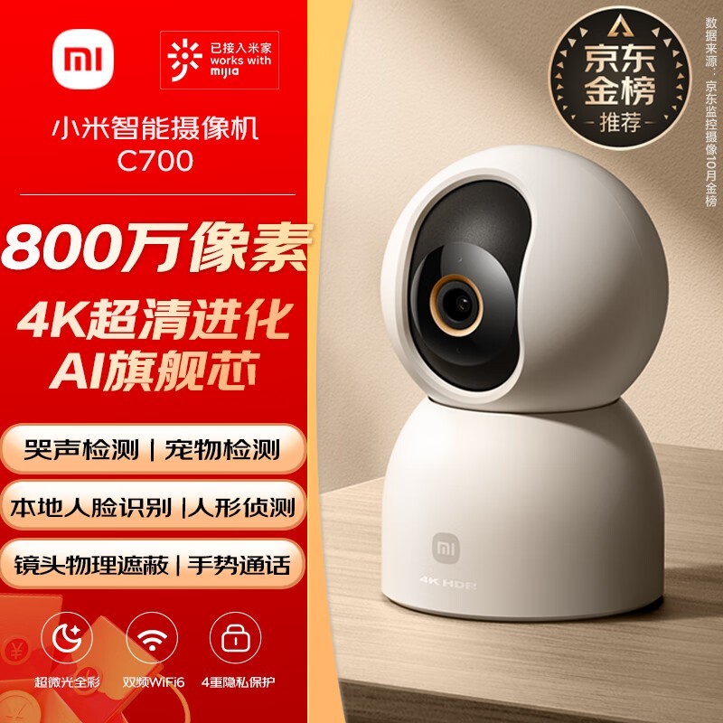 小米C700智能摄像头4K超清宠物检测宝宝哭声识别