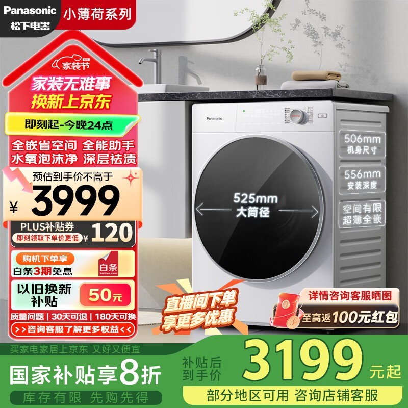 松下506臻薄系列洗衣机仅2630元到手