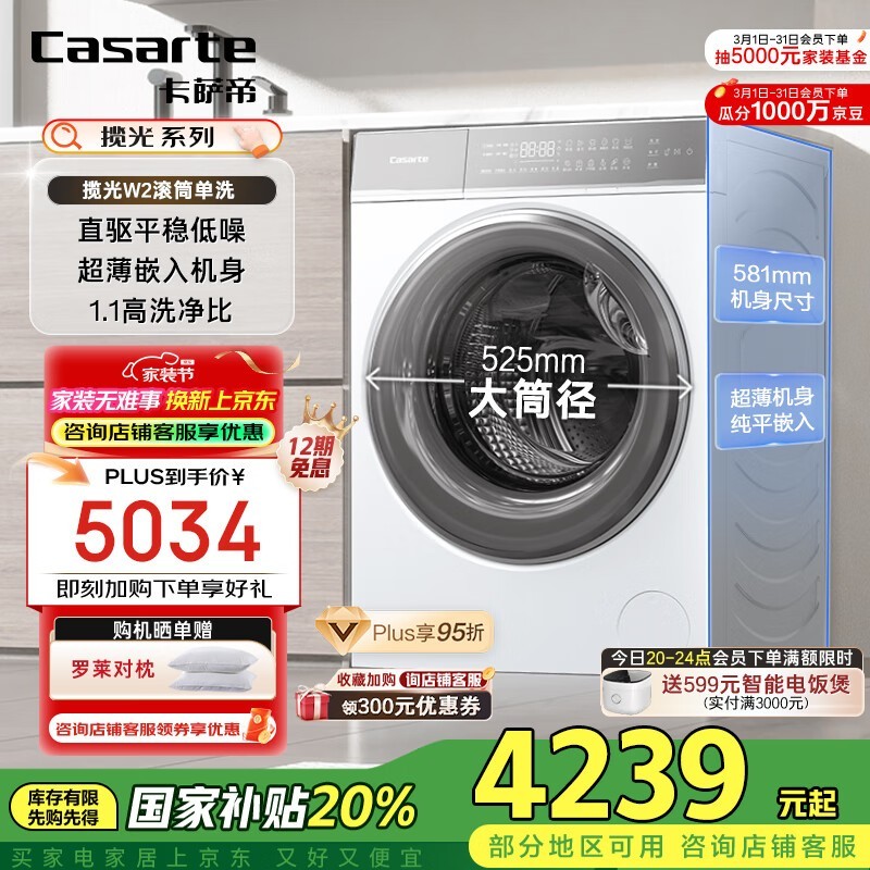 卡萨帝光年W2滚筒洗衣机10公斤全自动静音洗涤