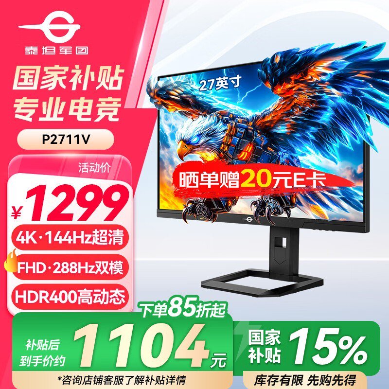 泰坦军团27英寸P2711V电竞显示器超值优惠