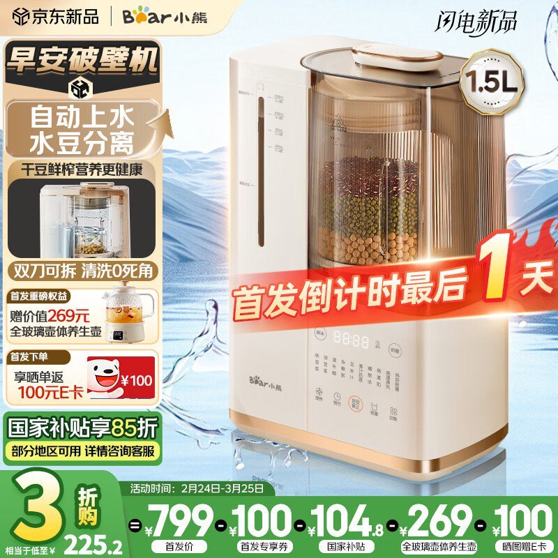 小熊PBJ-D12N5早安破壁机双刀可拆洗大容量促销