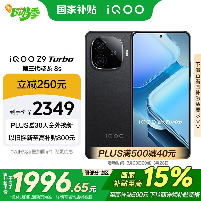 iQOO Z9 Turbo曜夜黑手机京东优惠价1841元