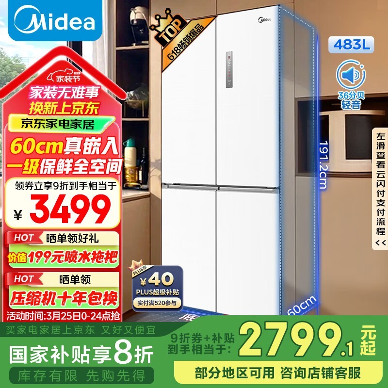 美的BCD - 483WSPZM(E)冰箱 京东优惠价2473元