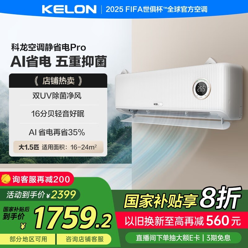 科龙大1.5匹睡眠空调新一级能效变频省电舒适健康