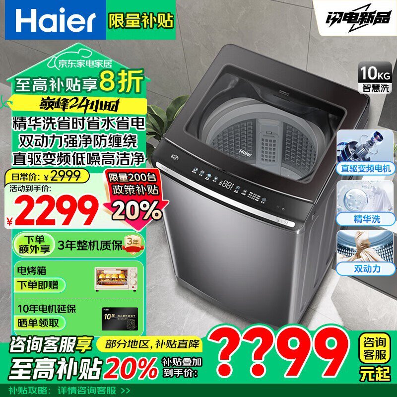 海尔云溪系列10kg波轮洗衣机到手价1399元