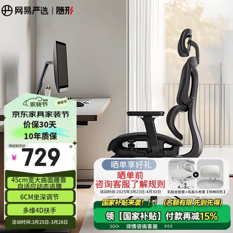 网易严选小蛮腰S9 Pro电脑椅黑色带搁脚款578元好价