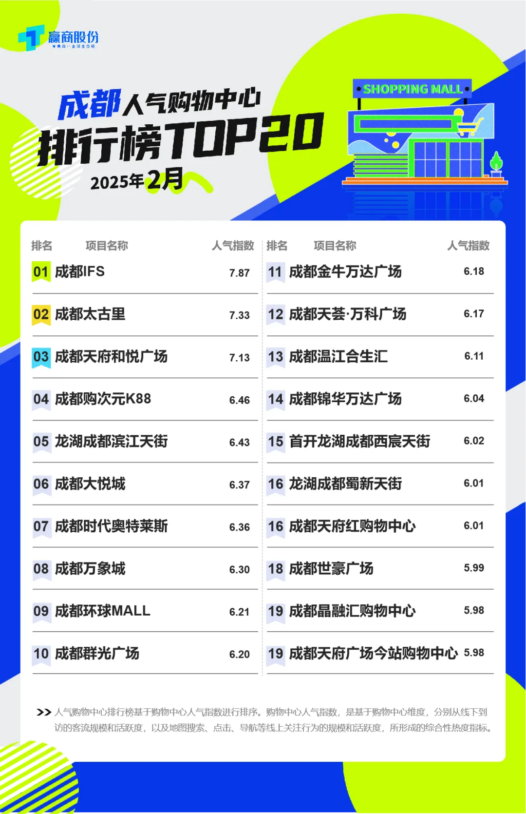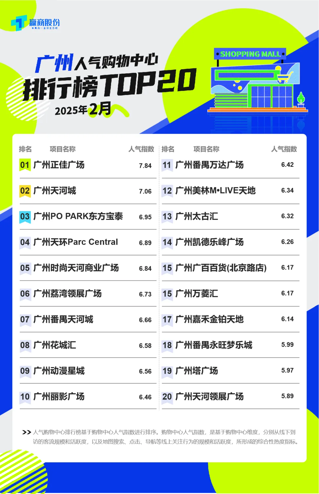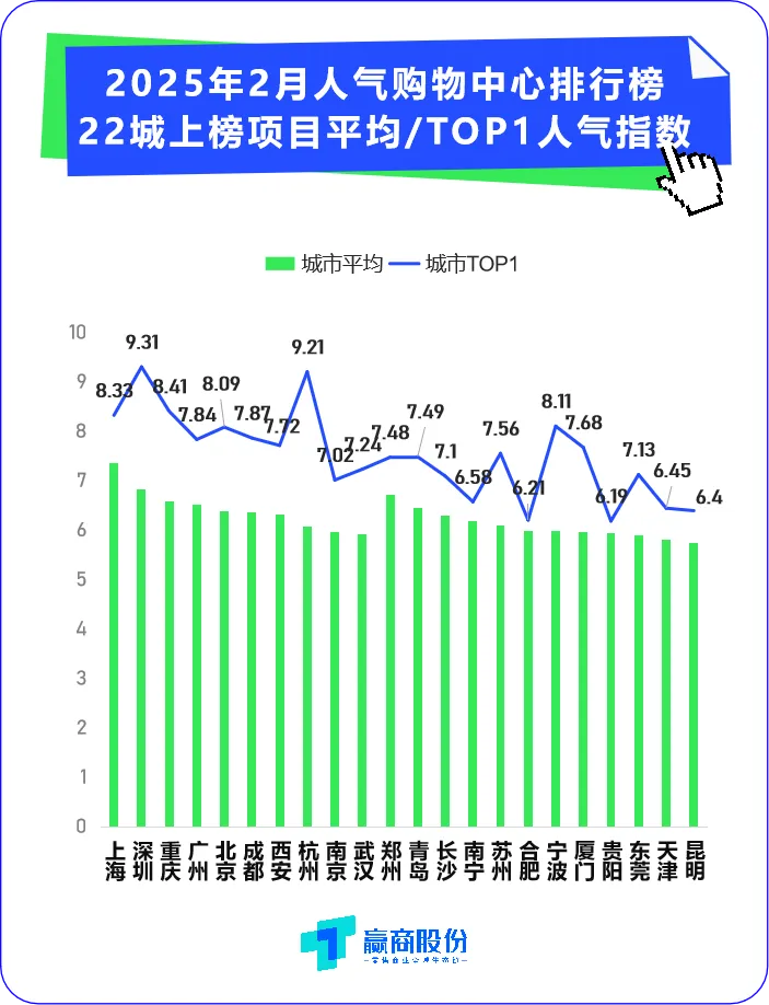 赢商股份《2025年2月人气购物中心排行榜》,22个城市上榜320个人气商场,其中近90%为1月上榜选手,侧面反映成熟的头部购物中心地位较难被颠覆。