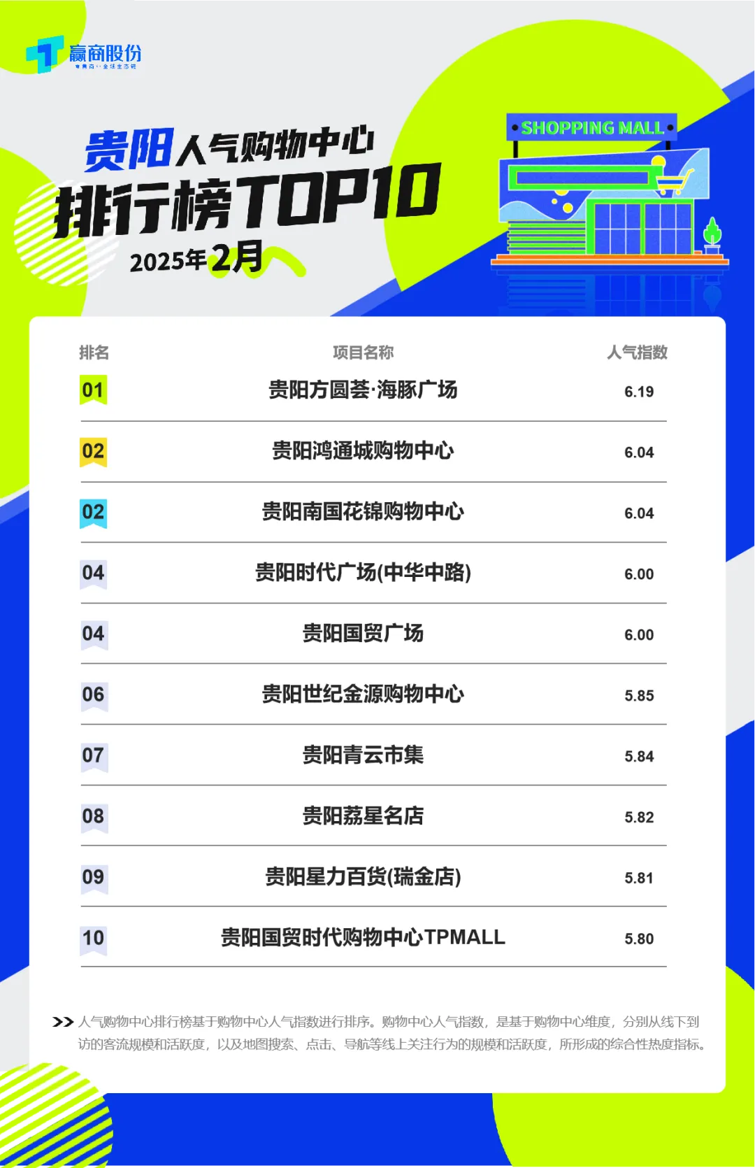 贵阳TOP20高度聚集于花果园、喷水池、中山西路等地铁站周边。贵阳青云市集、贵阳荔星名店、贵阳星力百货(瑞金店)为2月新上榜选手。