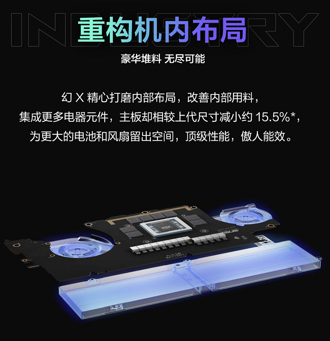 机体内布局重新排列后全面升级,14层高密度PCB主板较上代体积缩减15.5%,为70Wh电池与冰川散热架构2.0增强版腾出空间。不锈钢-铝-铜复合均温板覆盖55%主板区域,配合双二代绝尘风扇与暴力熊液态金属导热,在高强度视频渲染或持续游戏场景下,整机仍可保持80W稳定性能释放。双向内吹技术将冷气流引导至屏幕,屏幕表面温度较传统设计大幅降低,确保触控操作舒适性。