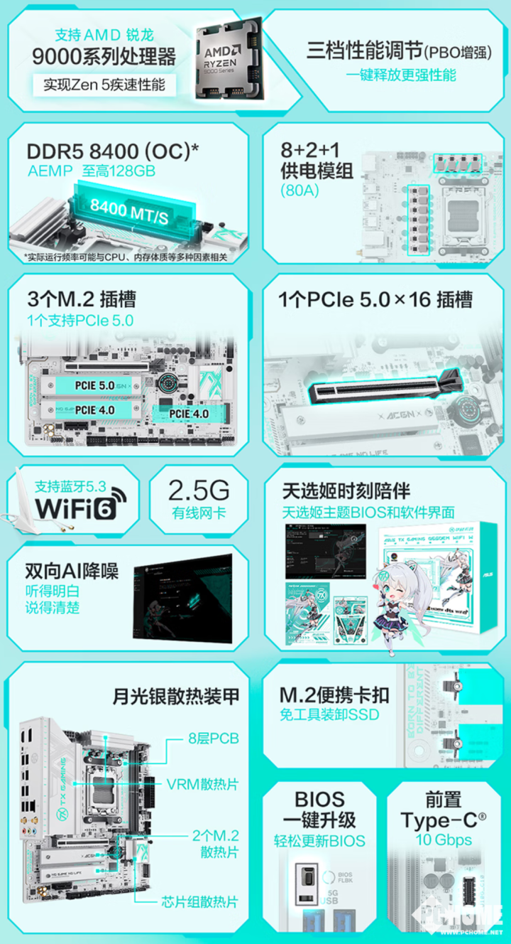 华硕近日推出了新款TX GAMING B650EM WIFI W主板,隶属于天选系列,采用了经典的纯白外观辅以绿色涂装的设计,采用M-ATX版型设计,为中端用户带来了新选择。目前该款主板已经在国内平台上架并且开启预约,首发价1299元,将于3月26日晚20时开售。