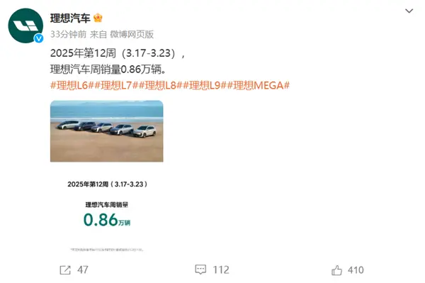 3月25日消息,以往每周二都是理想汽车公布最新一期周度销量榜的日子,但自从中国汽车工业协会倡议企业停发销量周榜后,理想汽车于上周停发了周销量榜单。