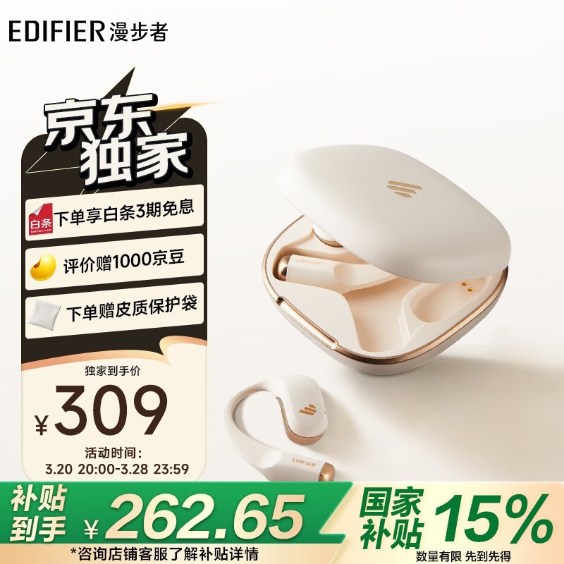 漫步者ComfoFit II蓝牙耳机 openness 云白情人节特惠促销