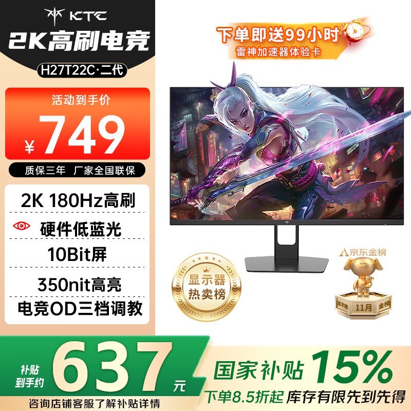 KTC H27T22C二代27英寸显示器优惠价598元
