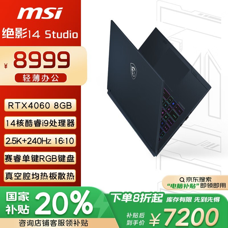 微星绝影14 Studio游戏本十三代酷睿i9-13900H京东特惠7163元