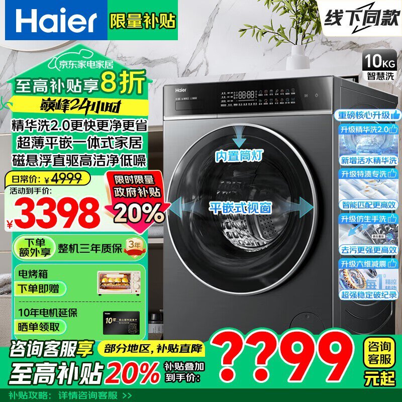 海尔云熙G100558BD12S洗衣机京东优惠价1959元