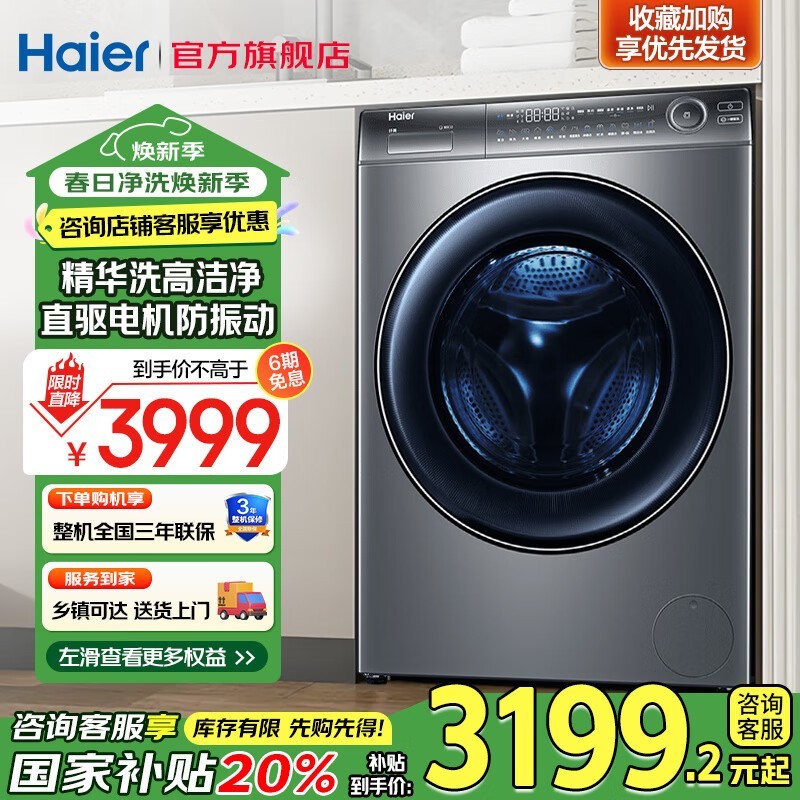 海尔云溪经典版洗衣机10KG大容量智能洗涤技术
