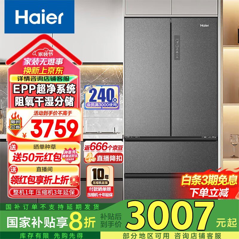 海尔510L风冷多门冰箱BCD-510WGHFD59S9U1低价促销