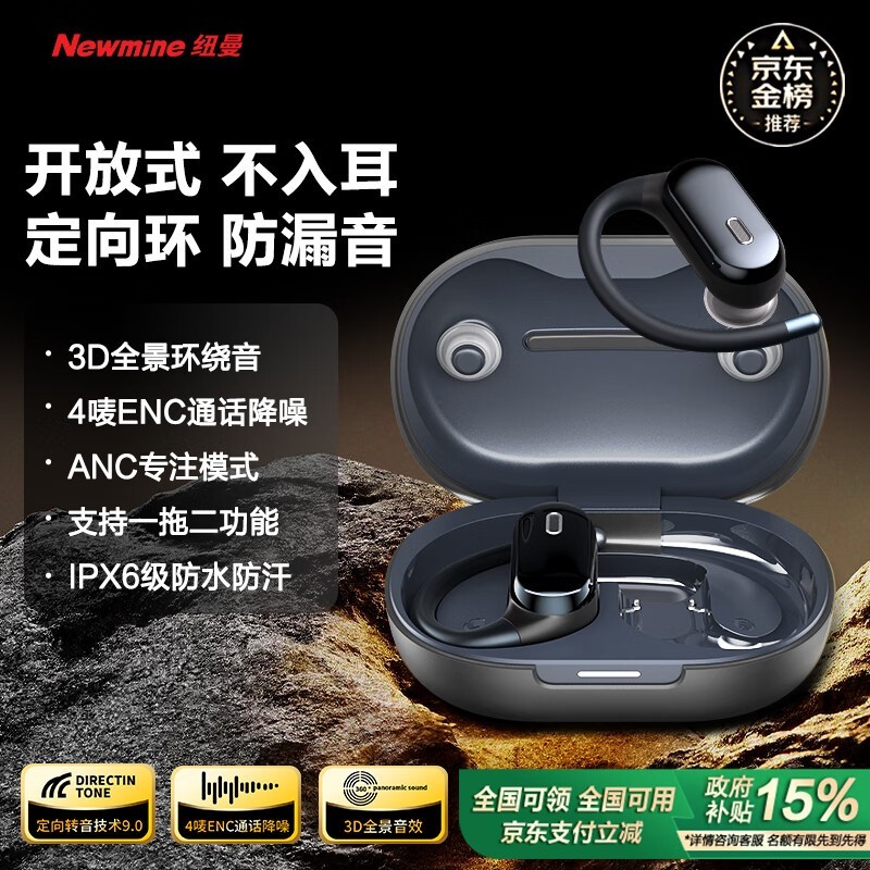 纽曼骨传导蓝牙耳机运动跑步挂耳解放双耳不清塞