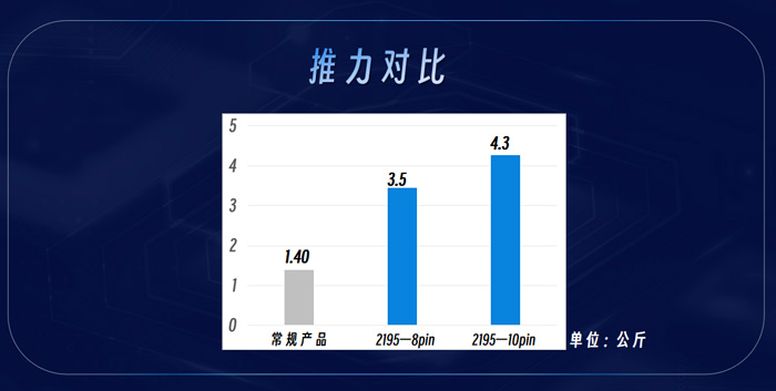2195 集成显示器件适配于P1.95 点间距显示屏,在结构上采用8引脚和10引脚两种结构设计。其中8 引脚相较于常规户内产品,引脚面积提升幅度达到 100%;10 引脚的提升幅度超过150%,引脚面积实现了大幅提升,进而产品的整体推力增强。8 引脚推力可达 3.5公斤,推力值提升超140%;10引脚的推力为4.3公斤,提升幅度高达 200% 以上。灯珠的防磕碰性能大大增强,极大提升了产品的耐用性,降低了维护成本,为高端租赁市场带来真正具有竞争力的解决方案。