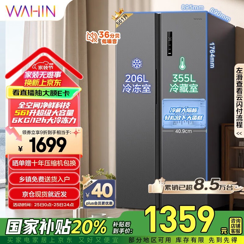 华凌对开门冰箱HR-589WKP双变频一级能效京东促销