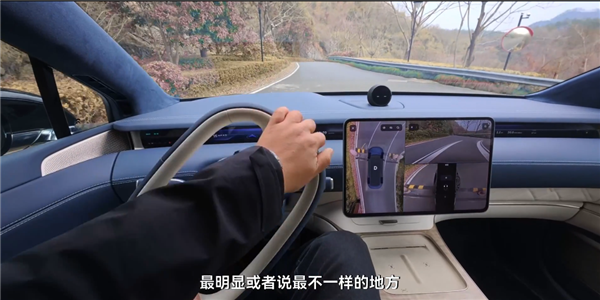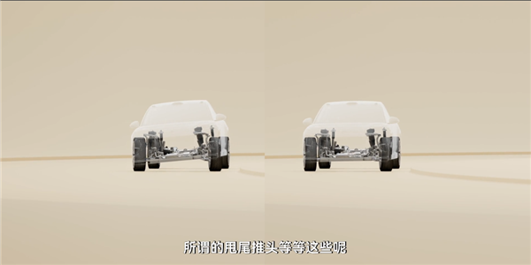 所以它的转向比是可以自由调节的,比如在低速倒车的时候,方向盘可以不用打满,就很轻松地停进车位里面;而在高速的时候,就算打方向幅度大一点,这个车也不会有很明显的晃动。