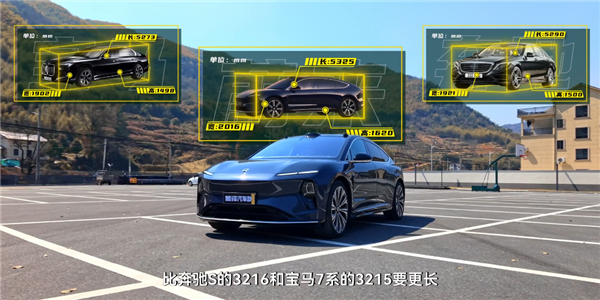 这波,脖子哥有幸收到官方邀请,就先代大伙儿肉身试试车。先看它的外观尺寸, ET9 的尺寸明显对标奔驰 S 和宝马 7 系,车身达到 5325 x 2016 × 1620 ,轴距 3250 。ET9 的车长在两者之间,车身更宽、更高,而且轴距也更长,空间必然是吊打这俩了。