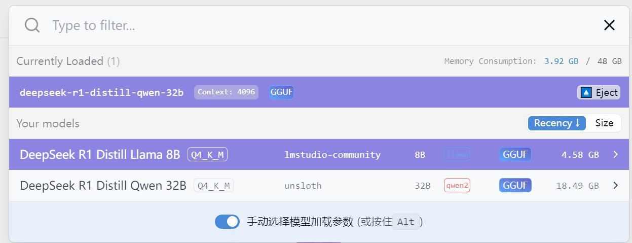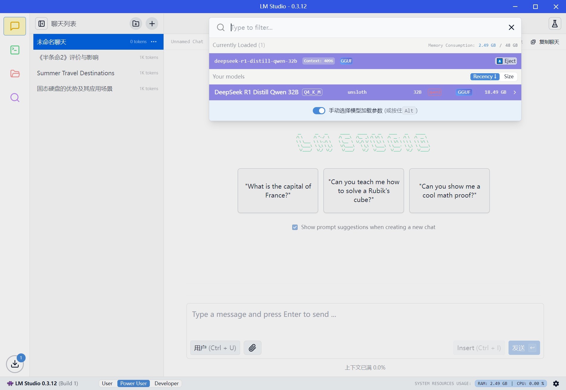 这里我们首先选择【DeepSeek R1 Distill Qwen 32B】模型。