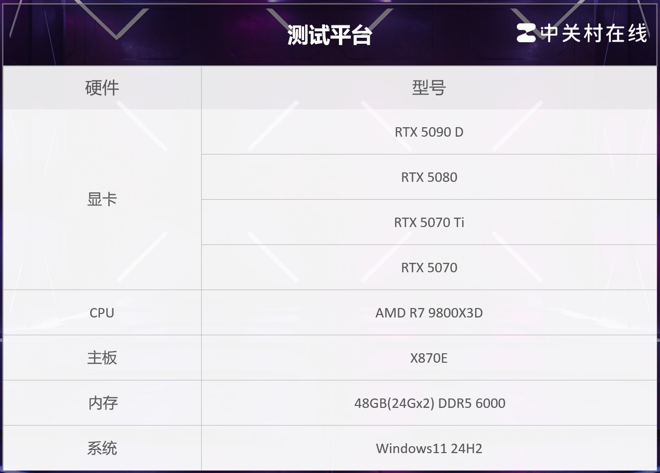 首先介绍一下测试平台,除了本次测试的4张显卡,处理器选择AMD R7 9800X3D,内存为48GB DDR5 6000MHz。