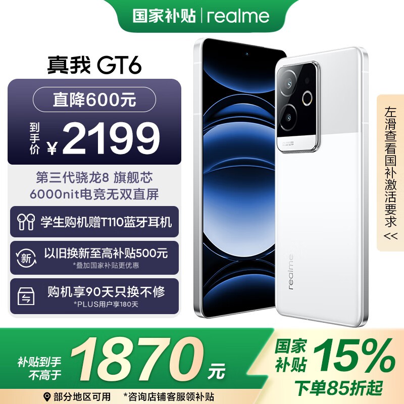 realme GT6 5G手机,大内存高配,优惠价1596元