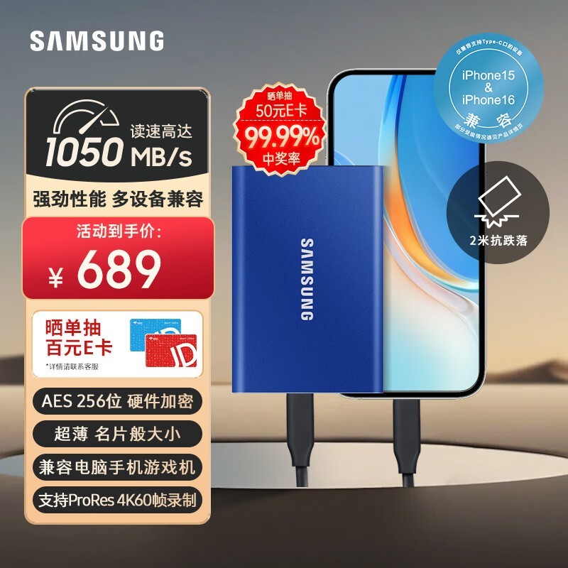 三星T7 1TB移动硬盘京东促销,券后649元