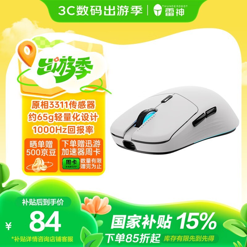 雷神ML7三模鼠标白色精准游戏办公仅75.32元