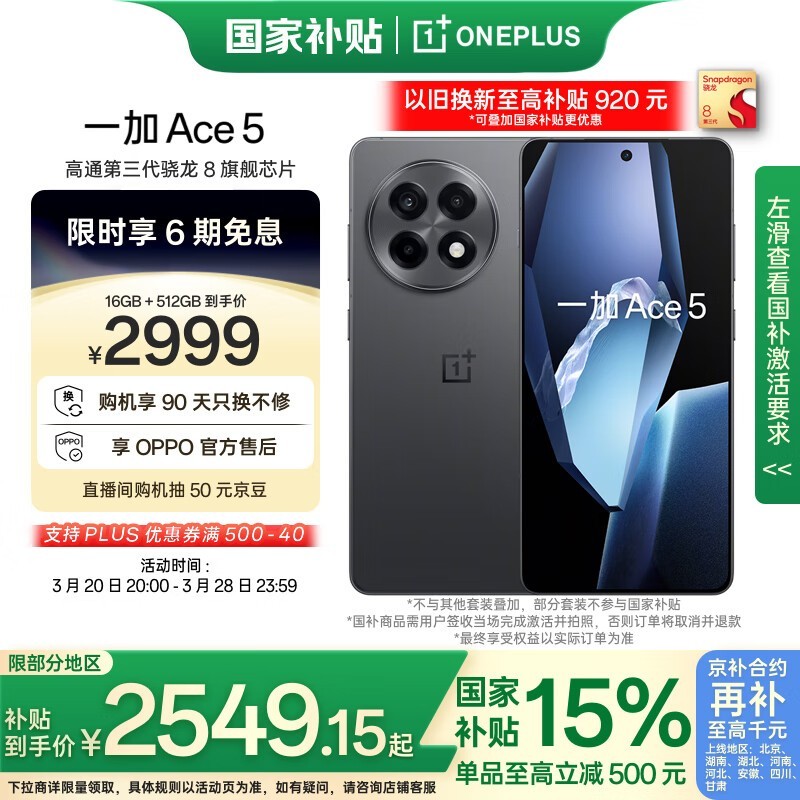 一加Ace5手机16+512GB全速黑京东特惠2515元