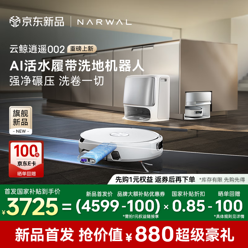 云鲸NARWAL逍遥002扫地机京东优惠价3725元