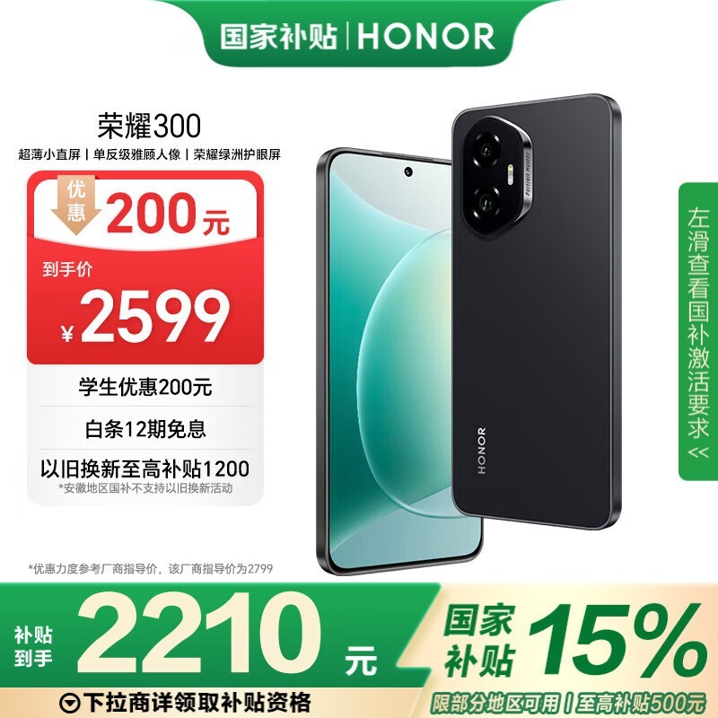 荣耀HONOR 300 5G手机12GB+512GB墨岩黑超值优惠