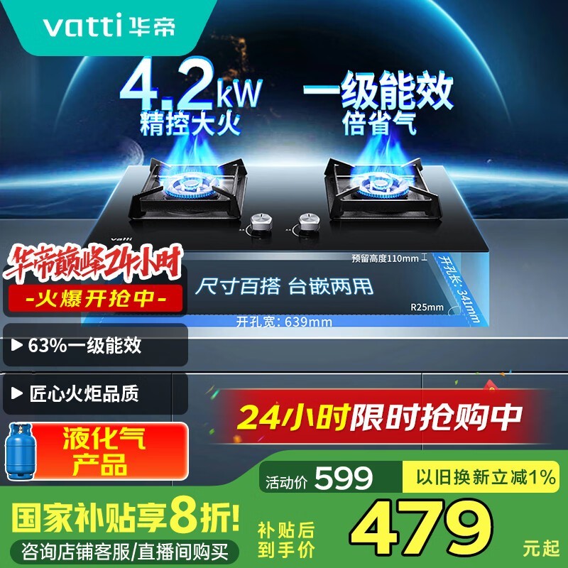 华帝JZY-i10051B燃气灶,大火力精控,到手价297元