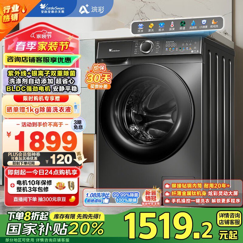 小天鹅浣彩系列10kg洗衣机到手价1041元