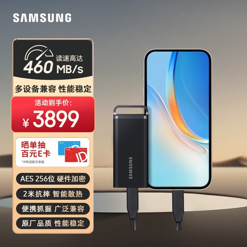 三星SAMSUNG T5 EVO移动固态硬盘8TB京东特惠3859元