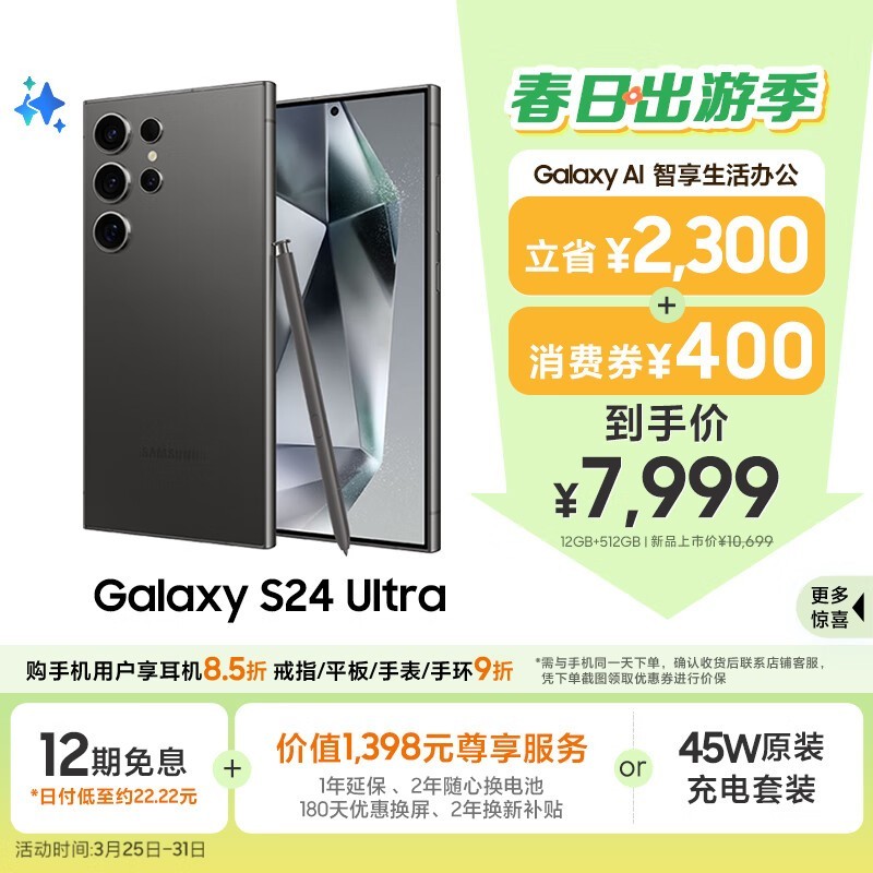 三星Galaxy S24 Ultra 5G钛黑版京东优惠价7252元