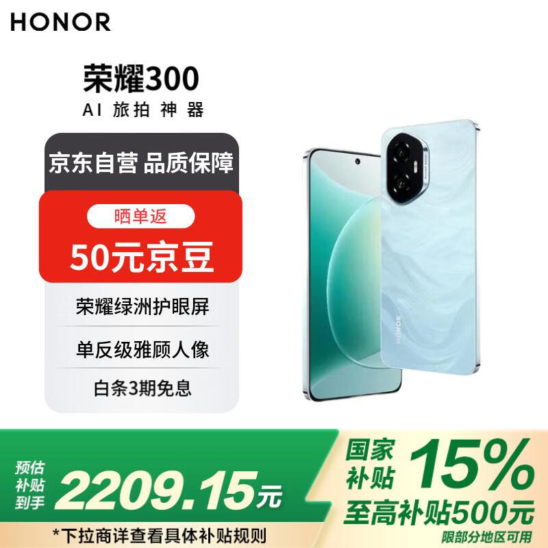 荣耀HONOR 300超薄小直屏手机,1884元抢购