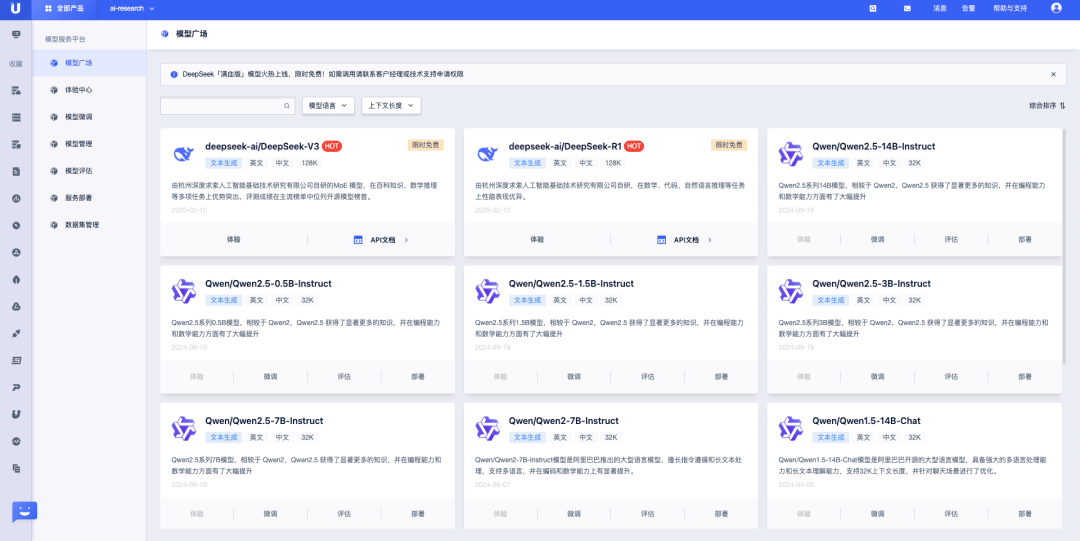 优刻得始终致力于降低模型部署及应用的技术门槛,助力企业轻松调用 DeepSeek等热门模型,无需投入大量时间和资源进行模型搭建与优化,即可将强大的AI能力融入自身业务流程中,加速产品创新与服务升级。