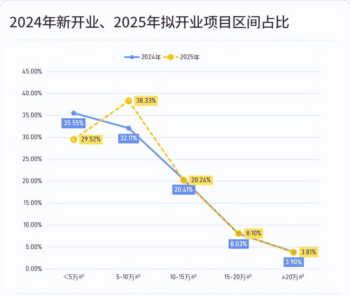 2025年拟开业项目中小体量占比有波动
