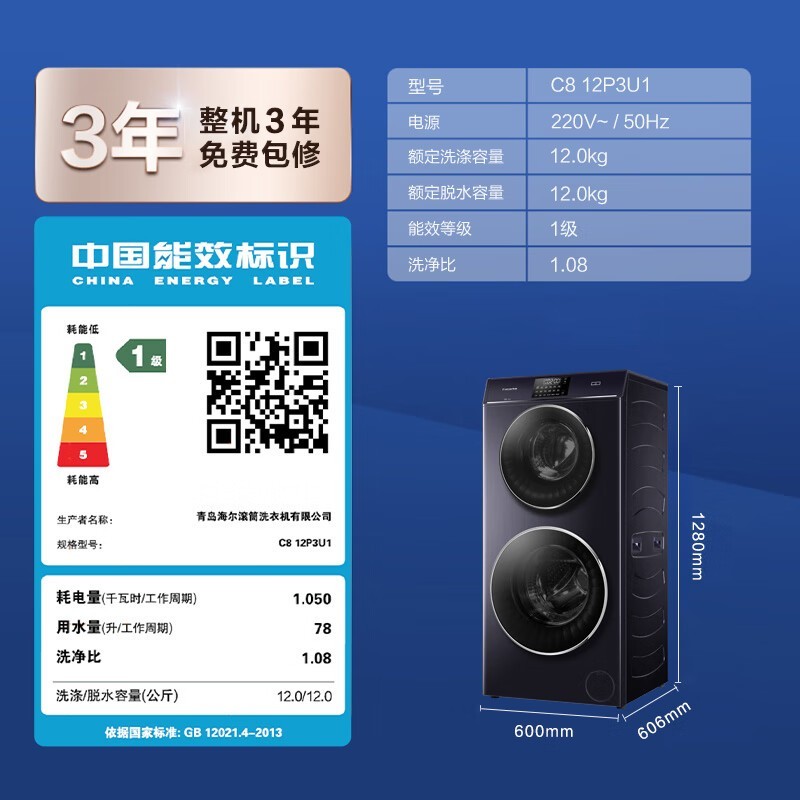 卡萨帝双子云裳洗衣机C8 12kg上下分区洗护仅4447元