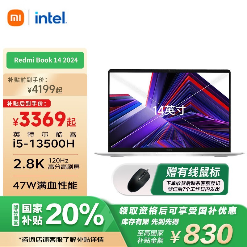 红米Book 14 2024款京东促销,到手价3369元