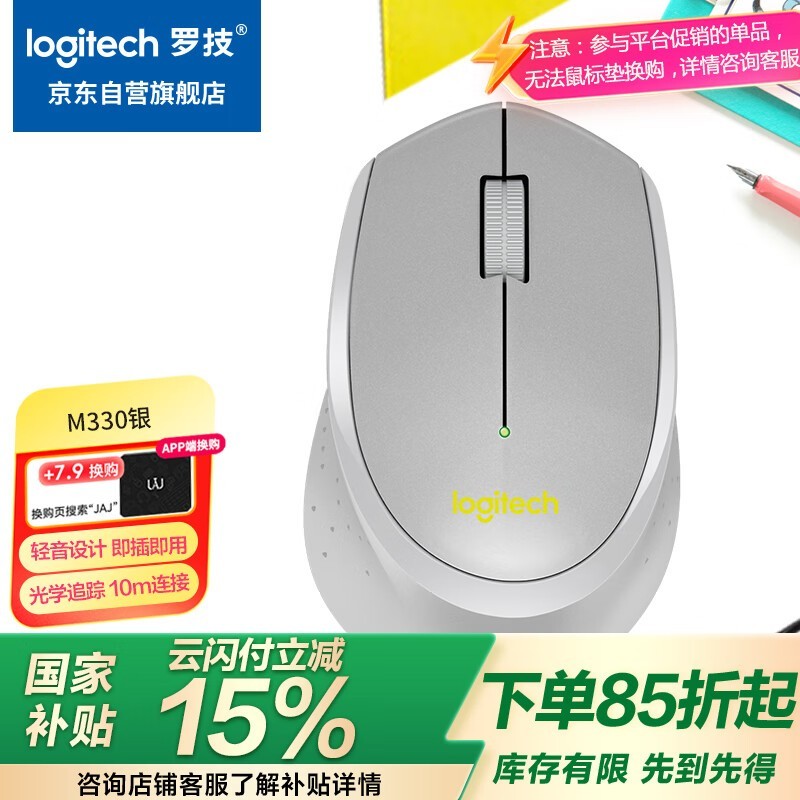 罗技M330无线鼠标超值优惠,到手价75.3元