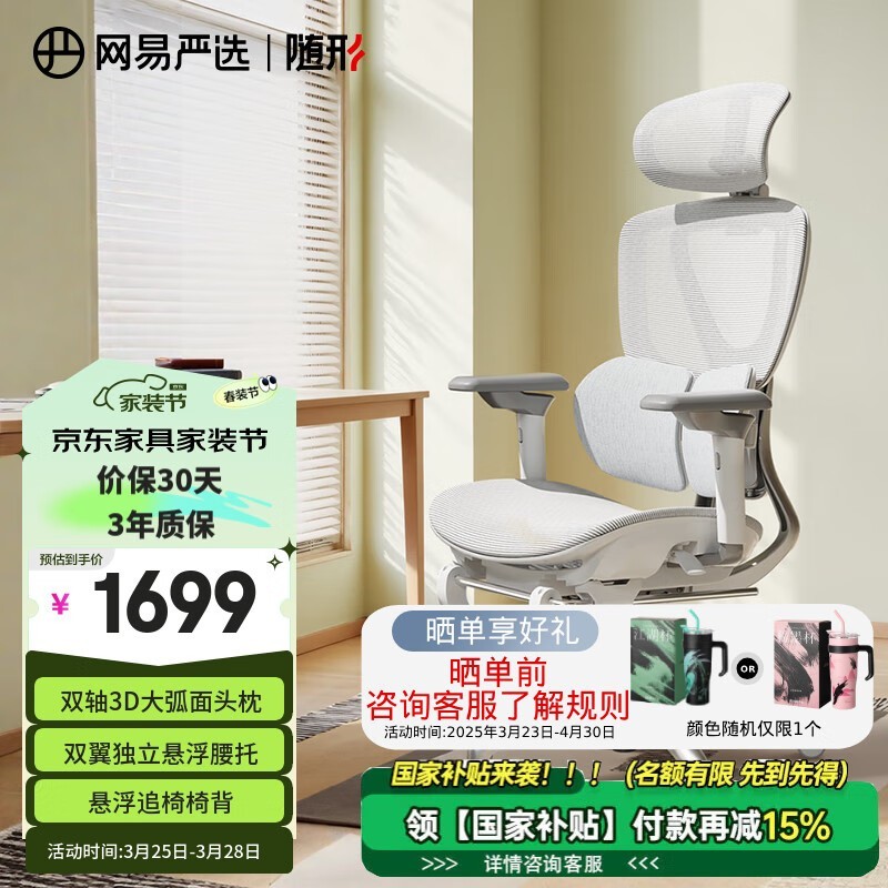 网易严选F300双翼护腰人体工学电脑椅特价至1225元