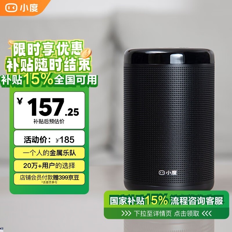 小度智能音箱大金刚优惠,到手价157元