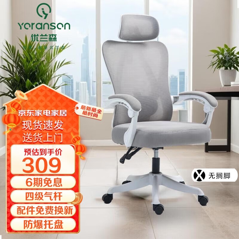 优兰森人体工学椅W2024云白款京东优惠价209元