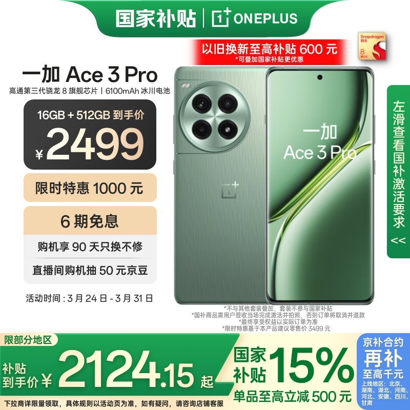 一加Ace 3 Pro 5G手机京东优惠低至1997元