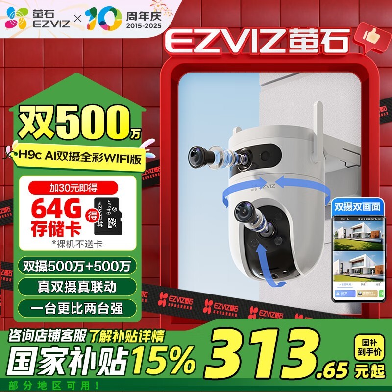 萤石H9c双目摄像头京东PLUS会员优惠价