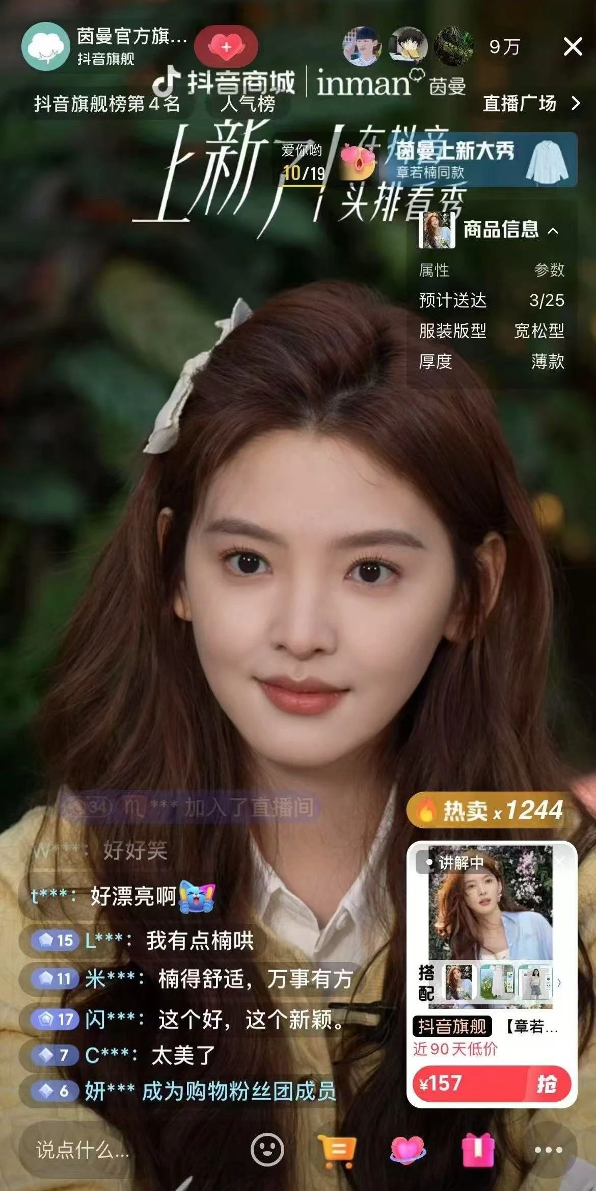 茵曼在人群拓展上迈出了重要一步。借助明星章若楠的强大影响力,实现了人群破圈沉淀。章若楠全网粉丝超6000万,其粉丝群体以Z世代消费人群为主,与茵曼的目标受众高度契合。通过与章若楠的合作,茵曼成功吸引了大量年轻消费者的关注,进一步扩大了品牌的消费群体,为品牌的长期发展注入了新的活力。